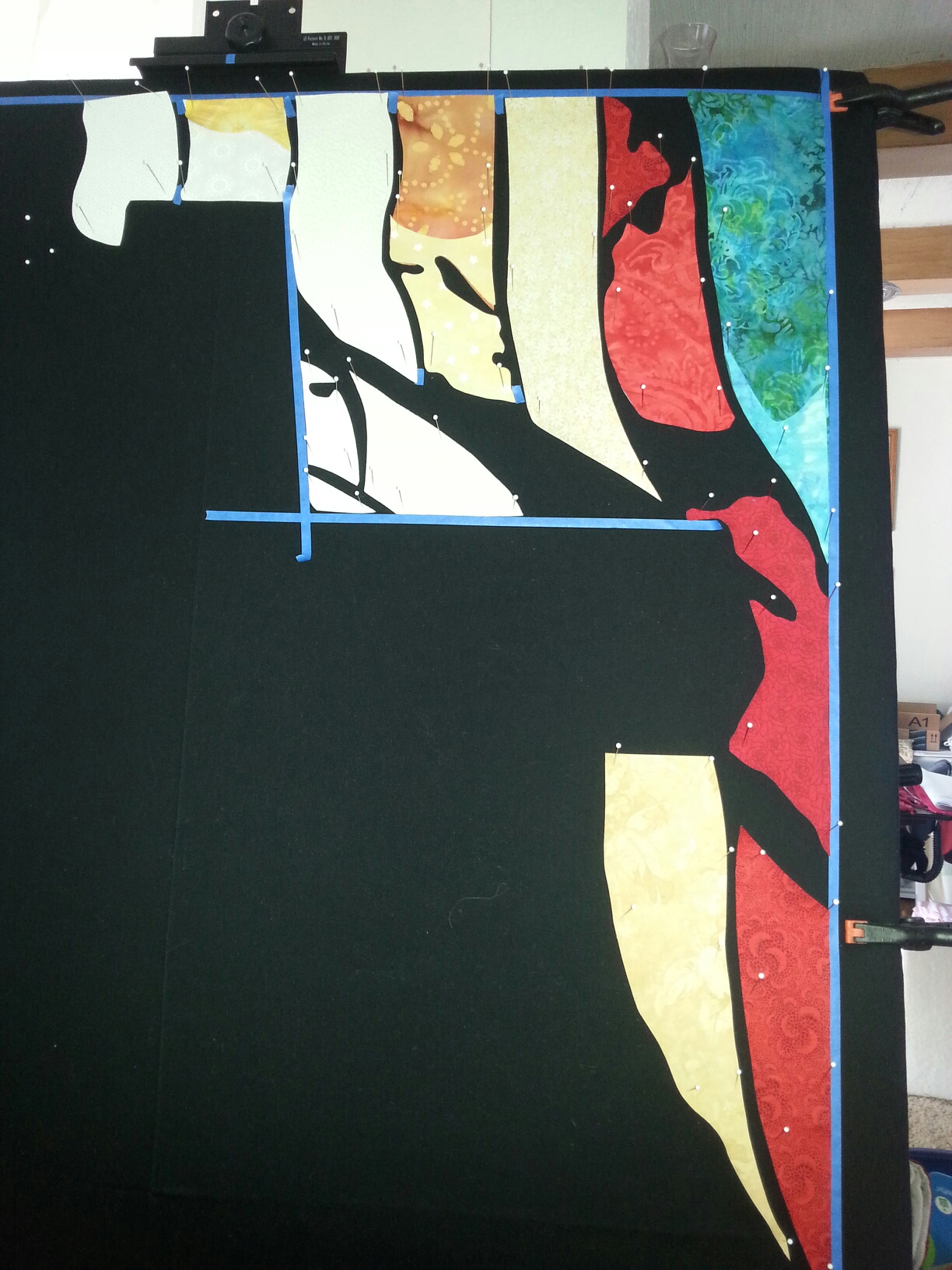 Prep work of God and Country Published on May 24, 2015 in The Making of an Art Quilt, “God and Country” by Emily EasleyFull resolution (1224 × 1632) Next → Working my fabric puzzle pieces one at a time. Prep work of God and Country