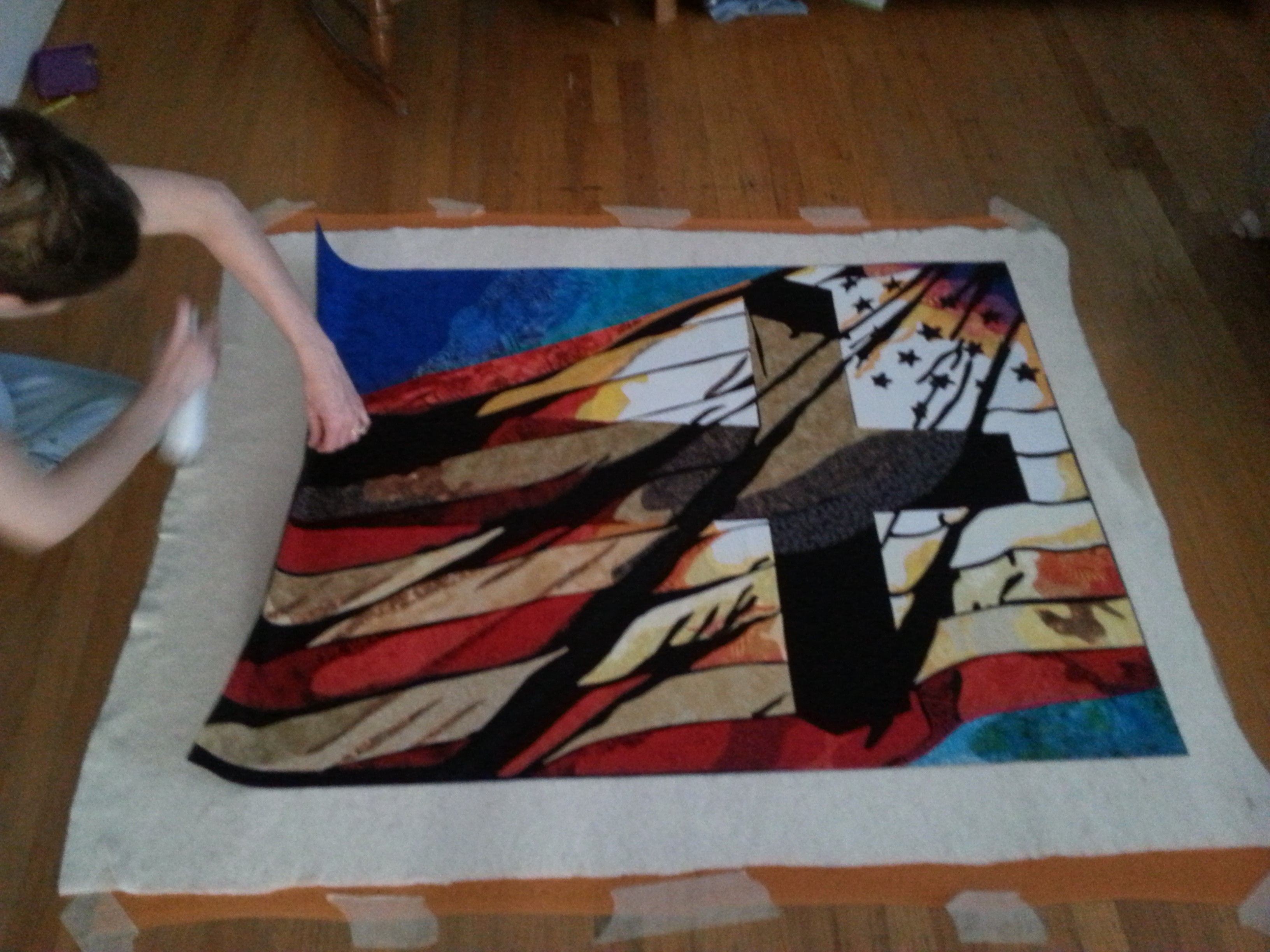 The process of putting God and Country, an art quilt together and assembled in front of a live audience during a 5th MVMNT night of worship at Bridgeway Christian Church.
